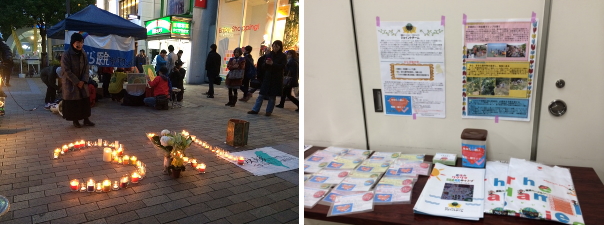 神戸の中心地である三ノ宮の駅前で、キャンドルを灯し、被災された方々へ祈りを捧げました。