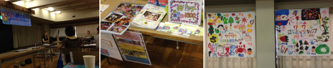 これまでキャンプに参加した子ども達の笑顔溢れる写真や、将来の夢を描いた絵や作文、保護者の方にも協力頂き、キャンプに参加した感想などを展示しました。